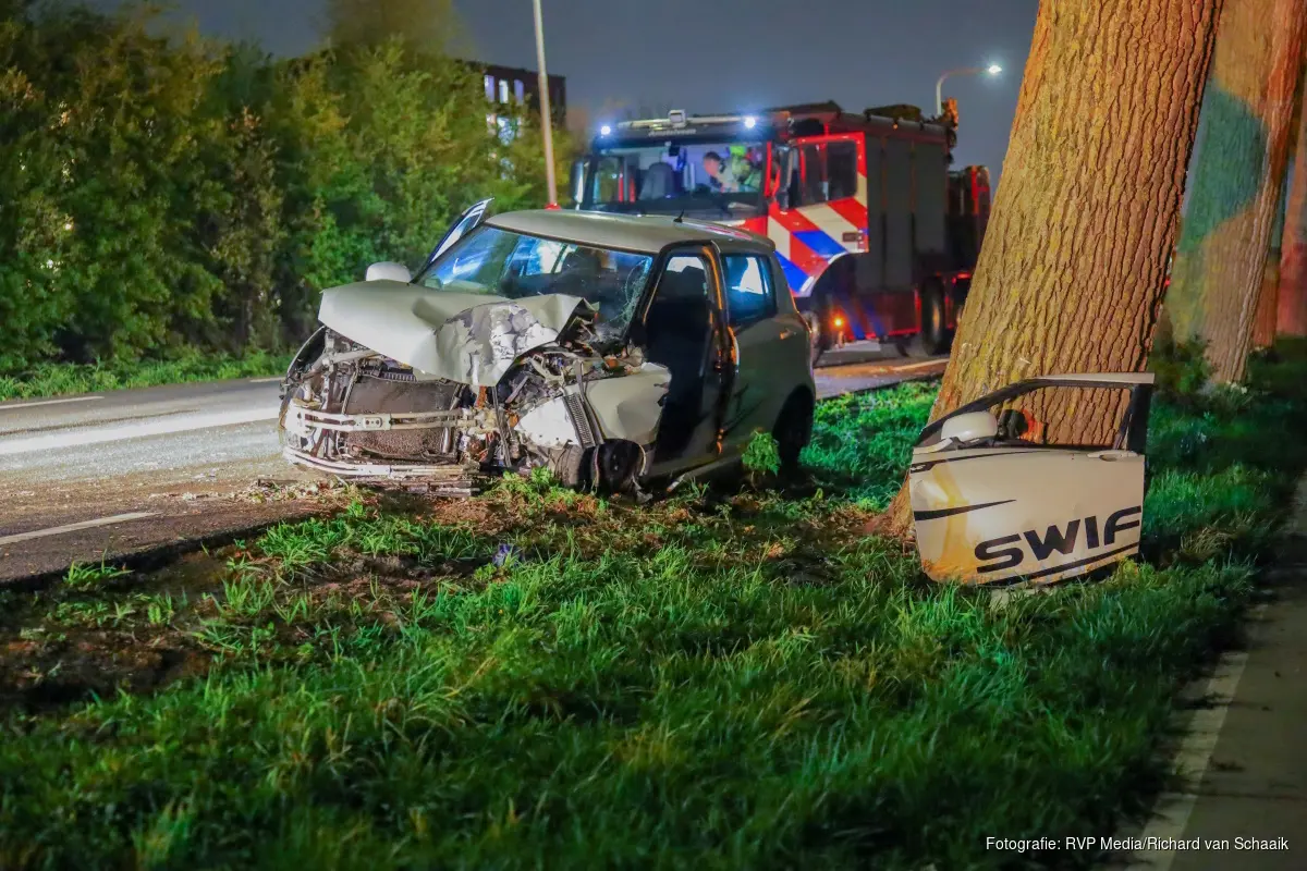 Een automobilist verloor door nog onbekende oorzaak de macht over het stuur en botste vervolgens tegen een boom. Omdat de bestuurder de deur van de auto niet openkreeg is deze door de brandweer er uit geknipt.