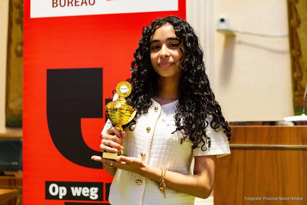 De prijzen voor de beste speech ging naar Elena Bruschweiler van het Bertrand Russel College uit Krommenie en naar Amel Rouis van Hervorm Lyceum West uit Amsterdam. Elena won met een aangrijpend verhaal over zelfdoding. Amel kreeg de beker voor haar verhaal over de humanitaire crisis in Republiek Congo. Deze winnaars komen binnenkort uit tegen de beste speechers uit de andere provincies.