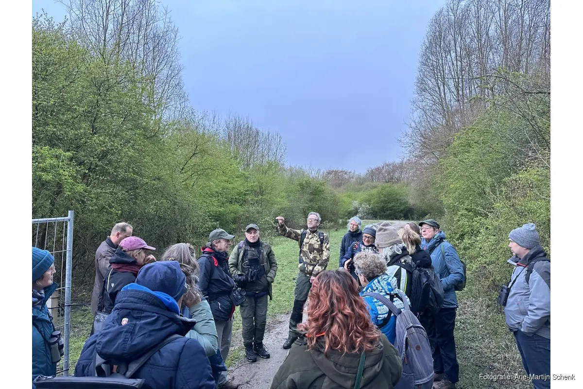 AMSTELVEEN - Aan de zuidrand van het Amsterdamse Bos, tegen de grens met Aalsmeer, verzamelen zo'n twintig deelnemers zich voor een excursie van de Vogelwerkgroep Amsterdam zich voor een excursie door het Schinkelbos. Het gebied oogt ruig en gevarieerd, met natte graslanden, rietzones, poelen en kleine bospercelen.