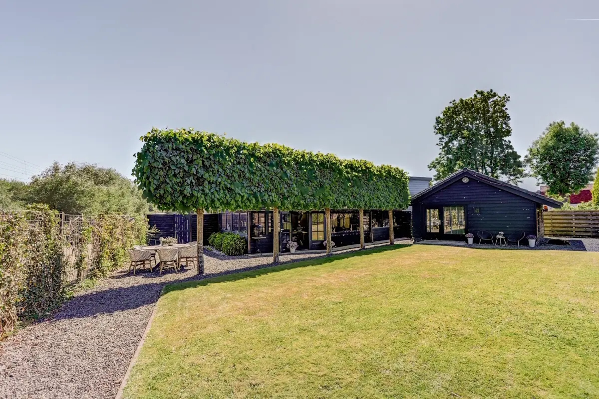 Liever even in de schaduw? Schuif aan onder de veranda aan de woning, waar u droog én beschut geniet van het buitengevoel. En dan is er nog de parel van het erf: de volledig overdekte buitenkeuken. Uitgerust met een sfeervolle bar, complete kookopstelling en open haard is dit dé plek waar borrels spontaan veranderen in feestjes. Binnen en buiten lopen hier naadloos in elkaar over.